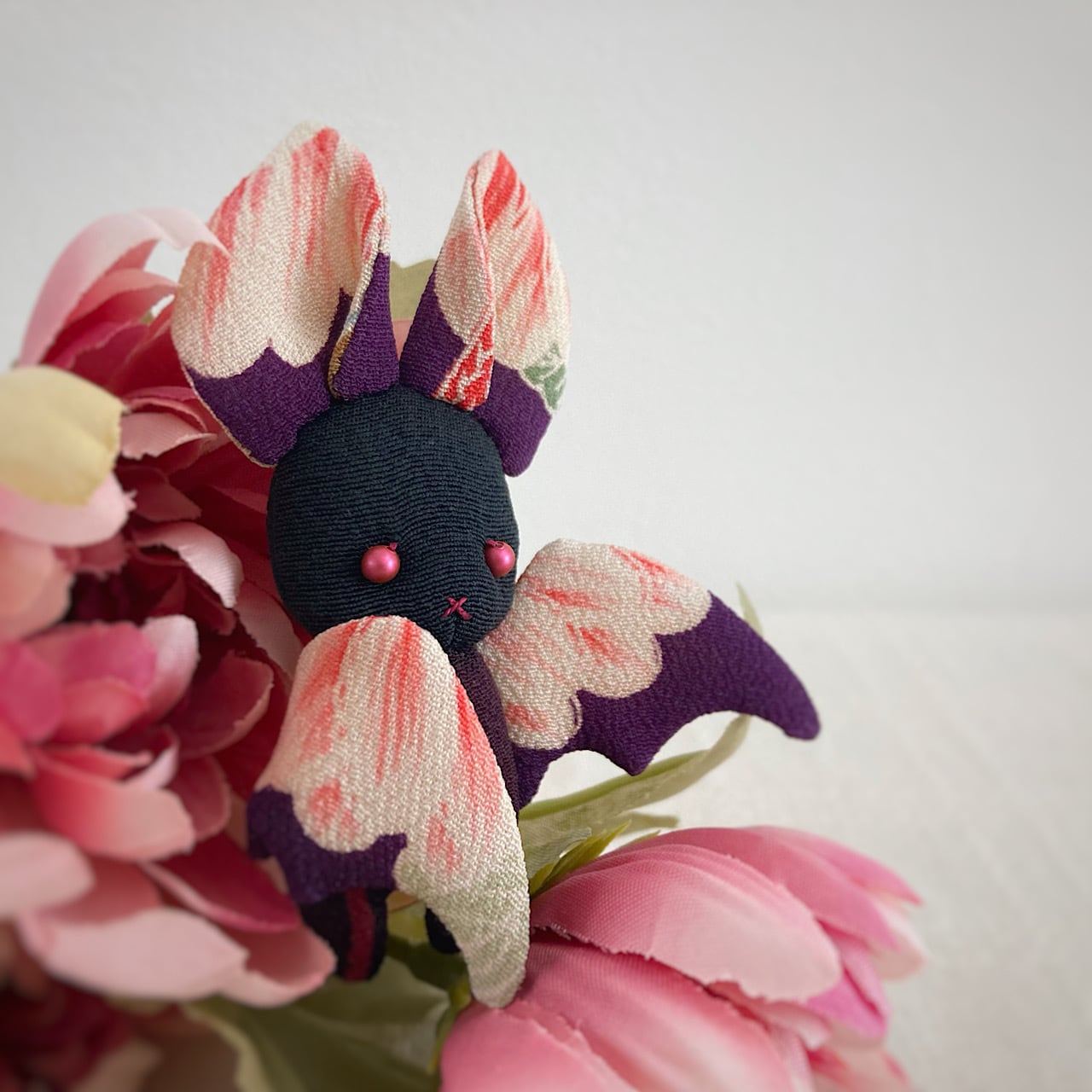 ちりめんや着物のハギレで作った、ハンドメイドのぬいぐるみです。