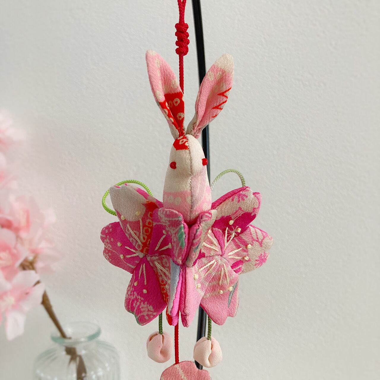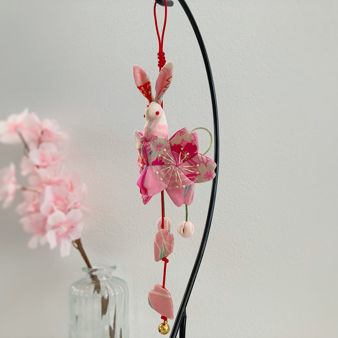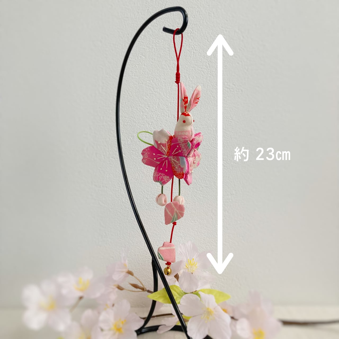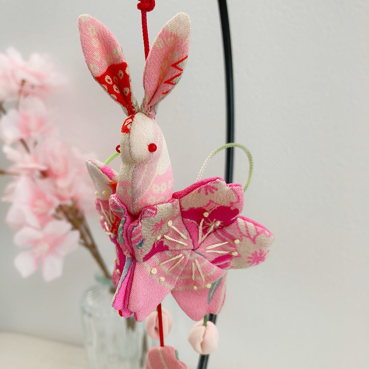 ぴょんぴょん跳ねるうさぎさんは「飛躍」、桜は「豊かさ」の象徴でもあり、縁起の良い飾り物となっています。