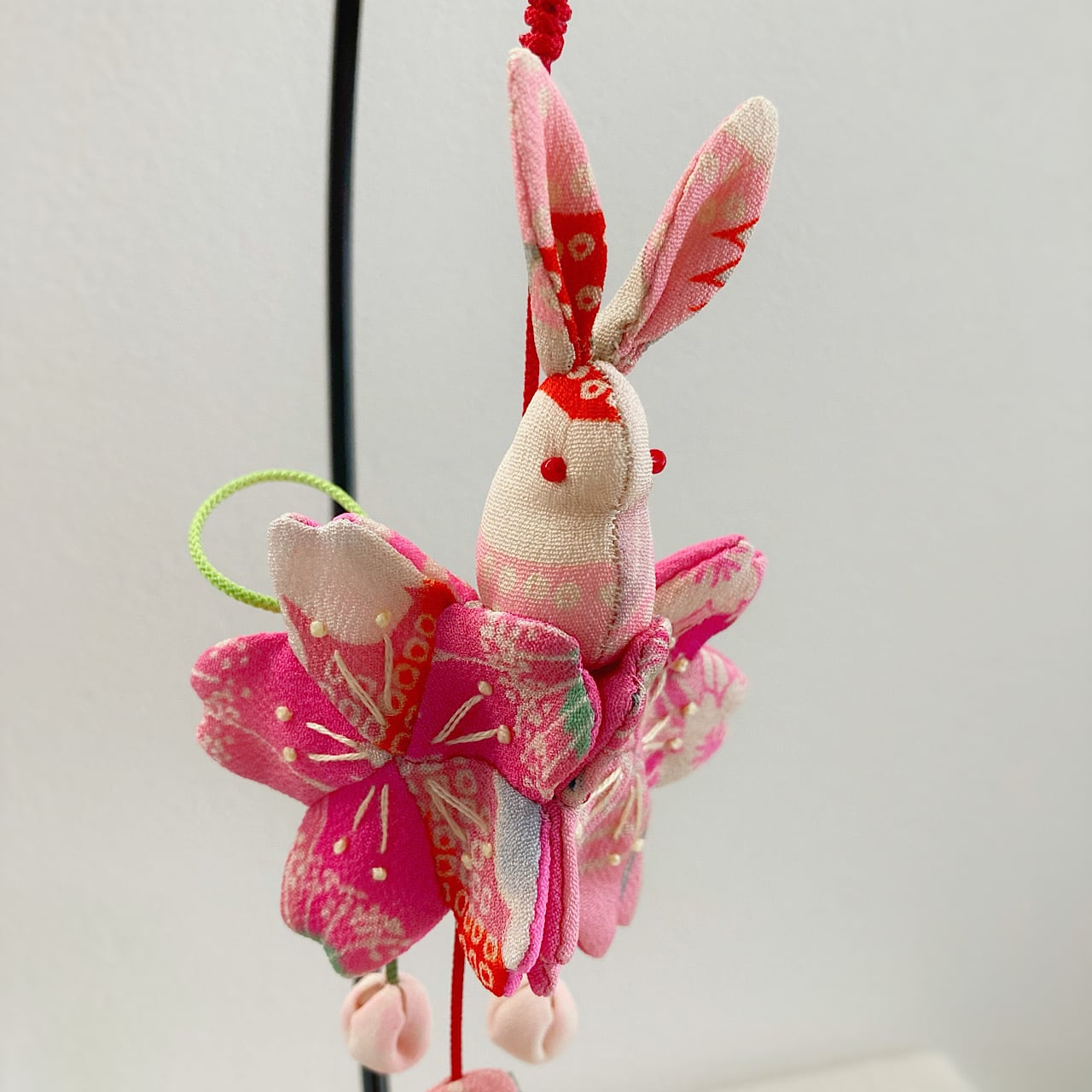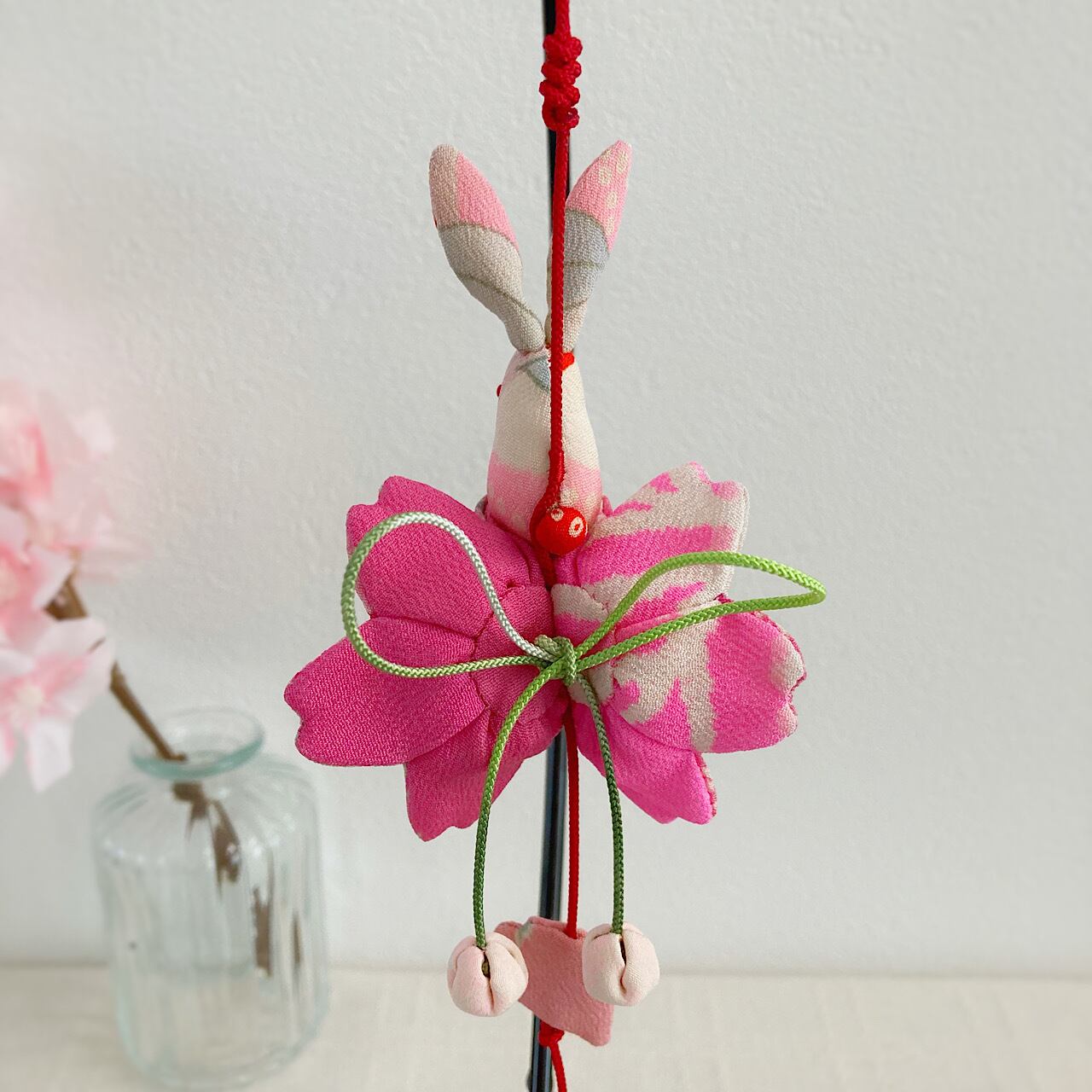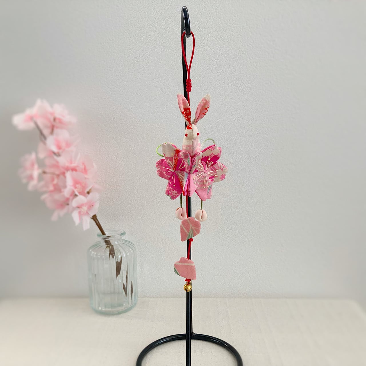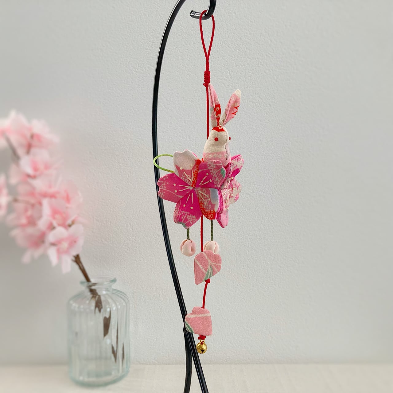 ぴょんぴょん跳ねるうさぎさんは「飛躍」、桜は「豊かさ」の象徴でもあり、縁起の良い飾り物となっています。