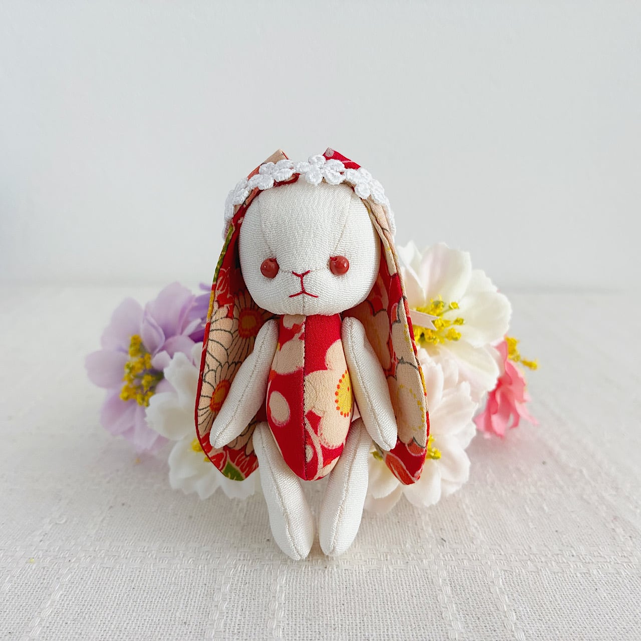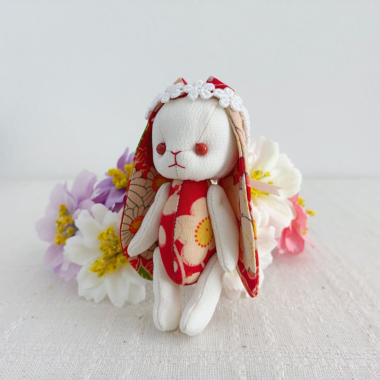 ちりめんや着物のハギレで作った、ハンドメイドのぬいぐるみです。