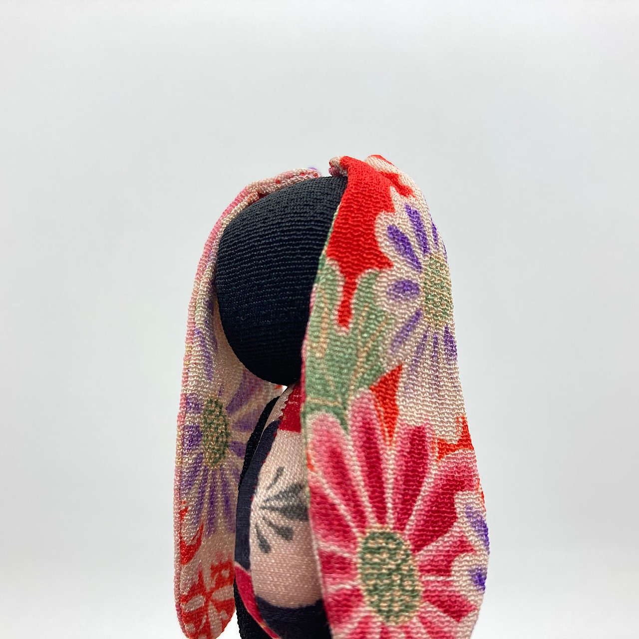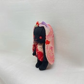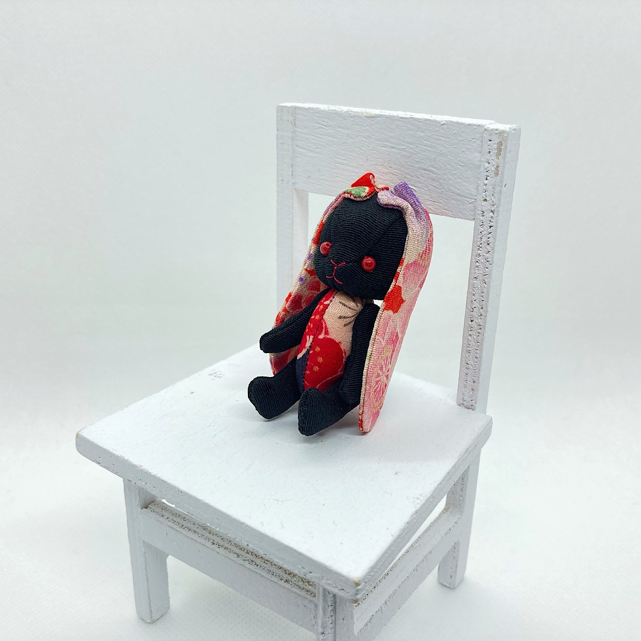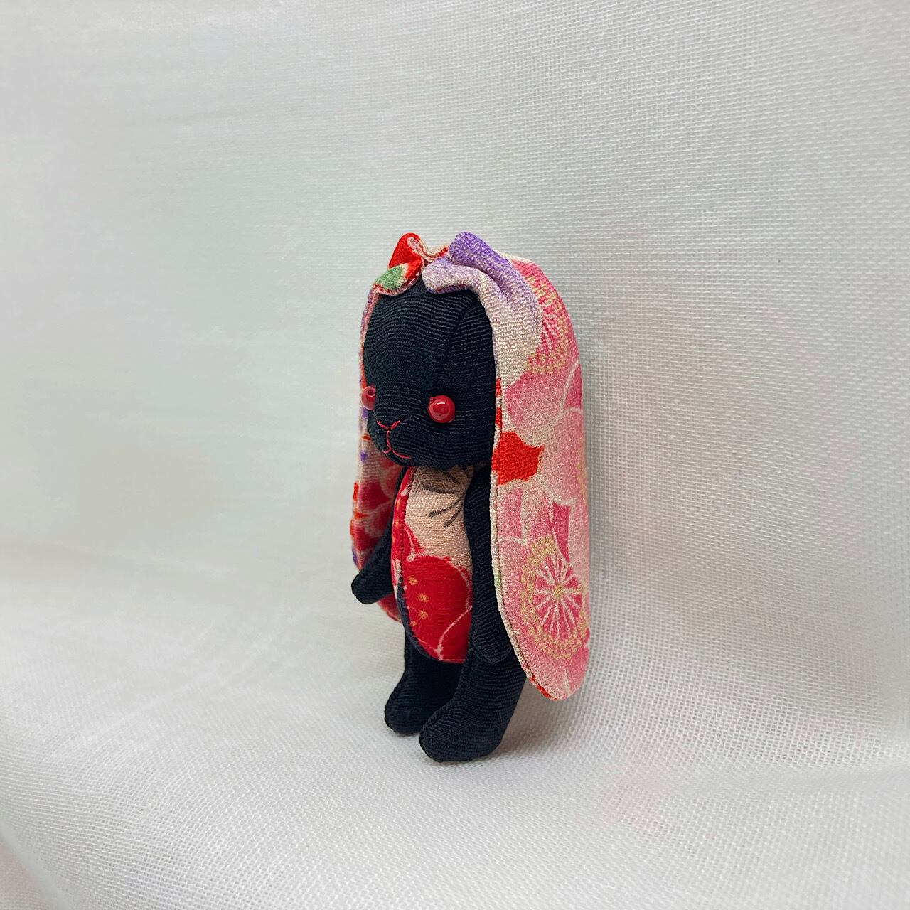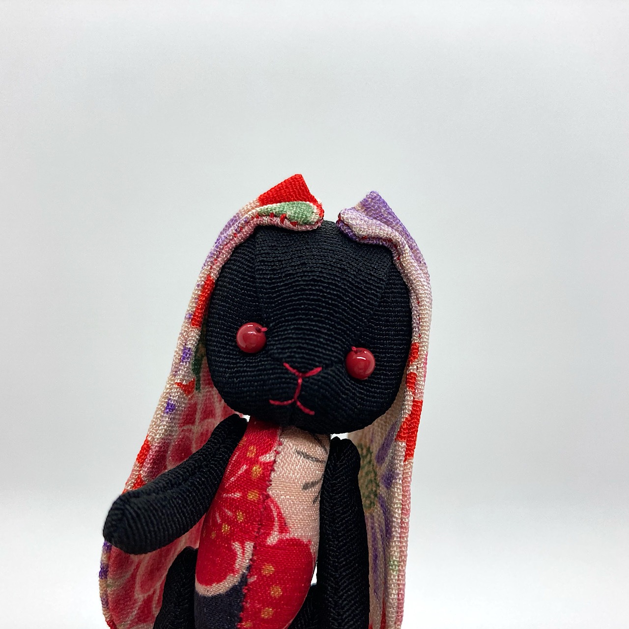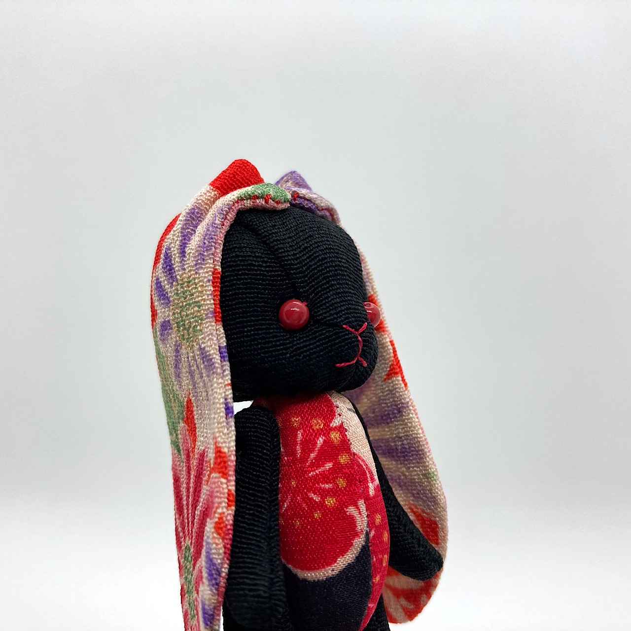 黒地に紅白梅の柄が特徴的な、黒うさぎさんです。