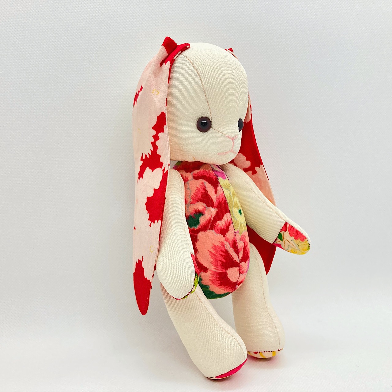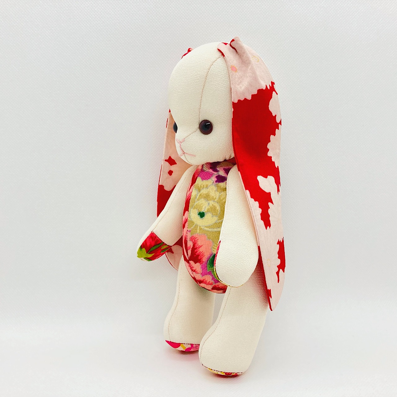 大きな白うさぎさん【赤色地に菊と牡丹】