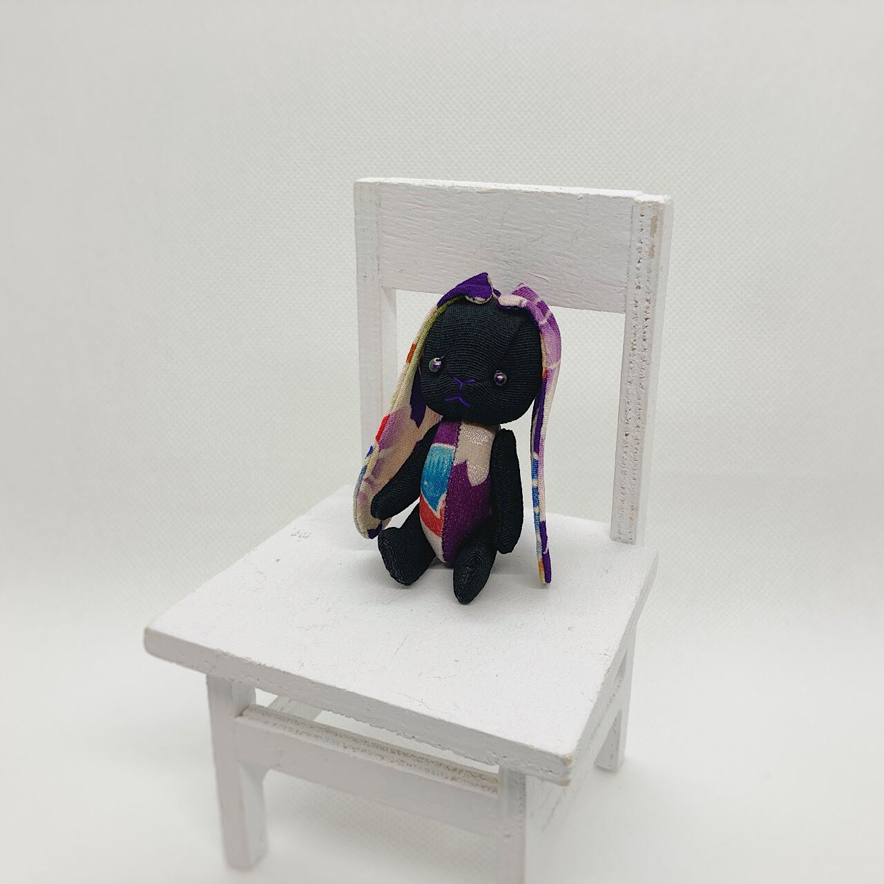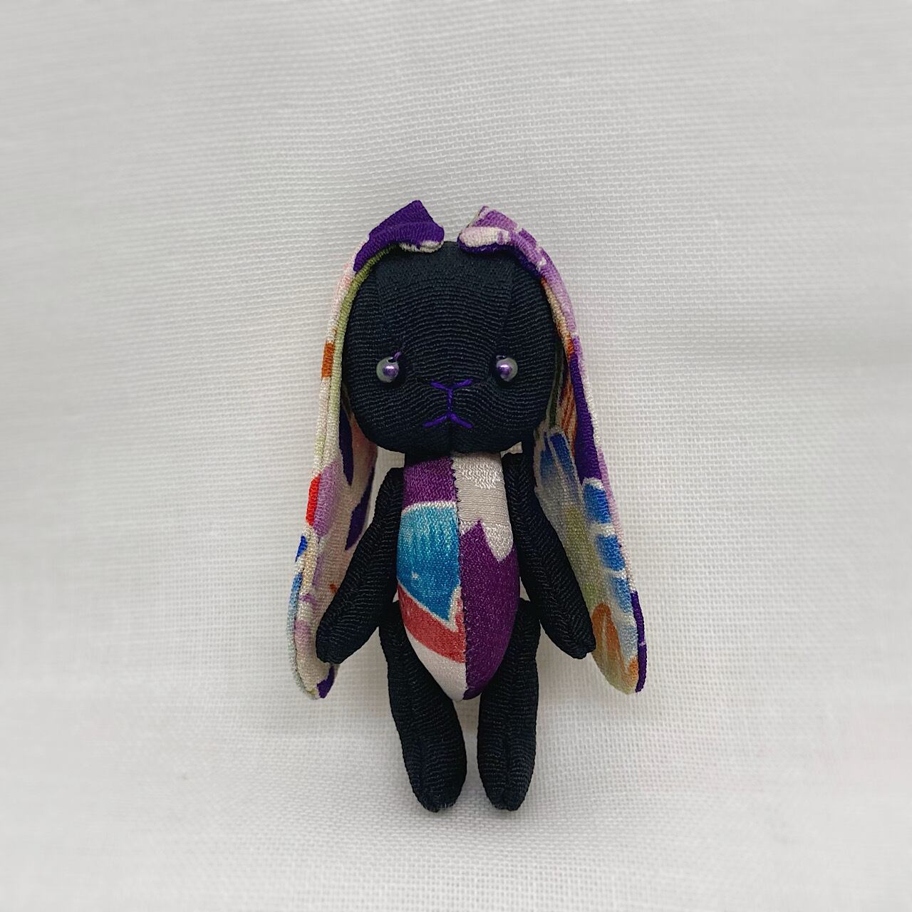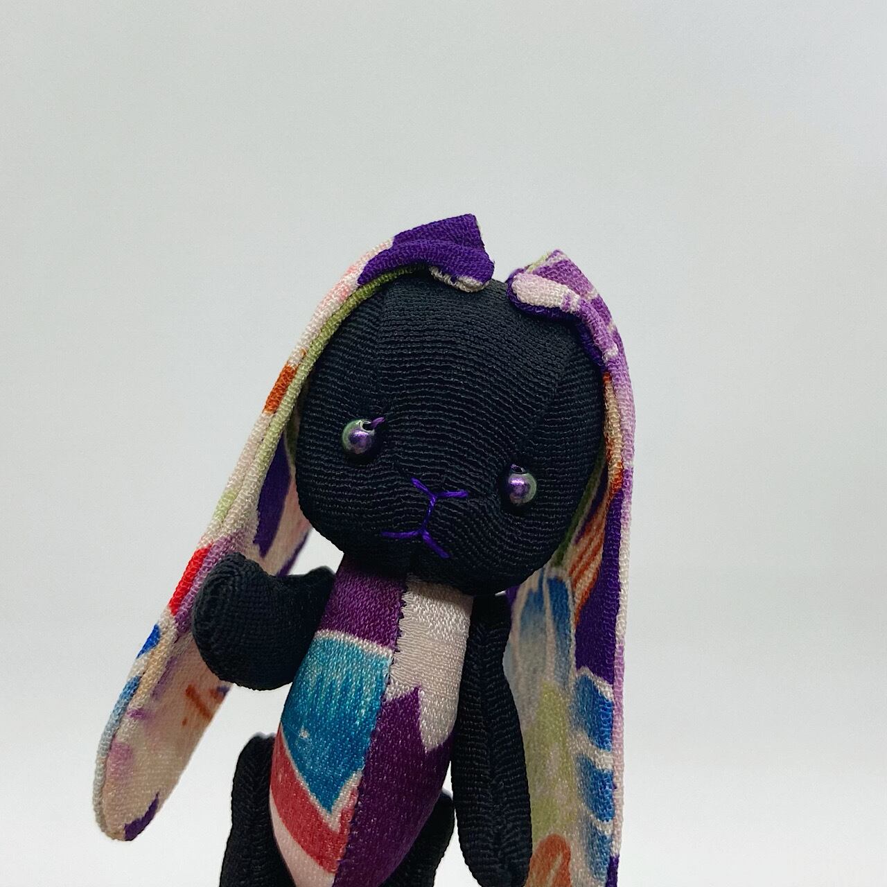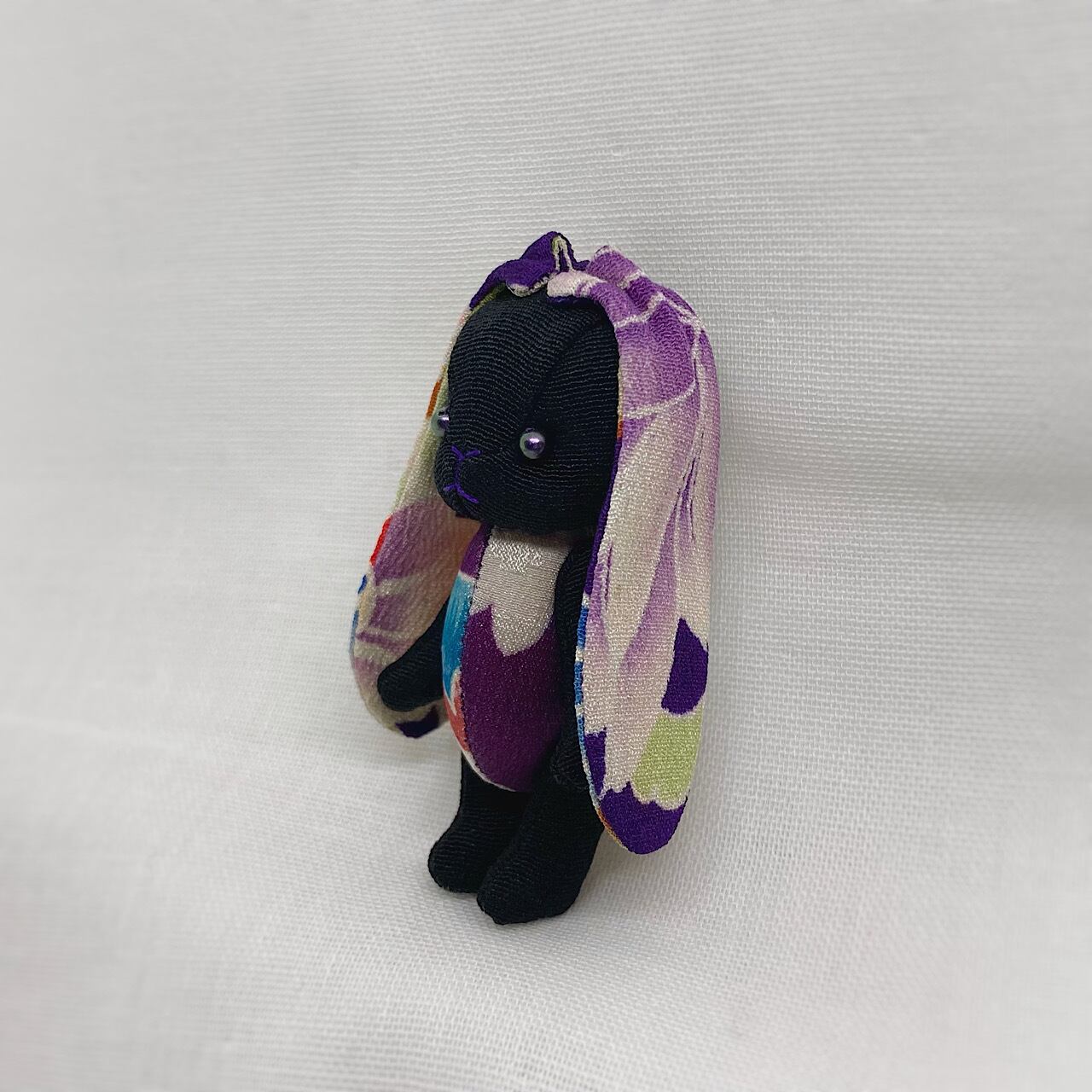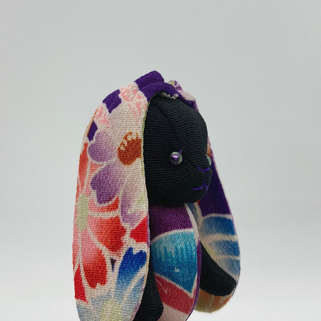 黒うさぎさん・たれ耳【紫色地に彩菊】
