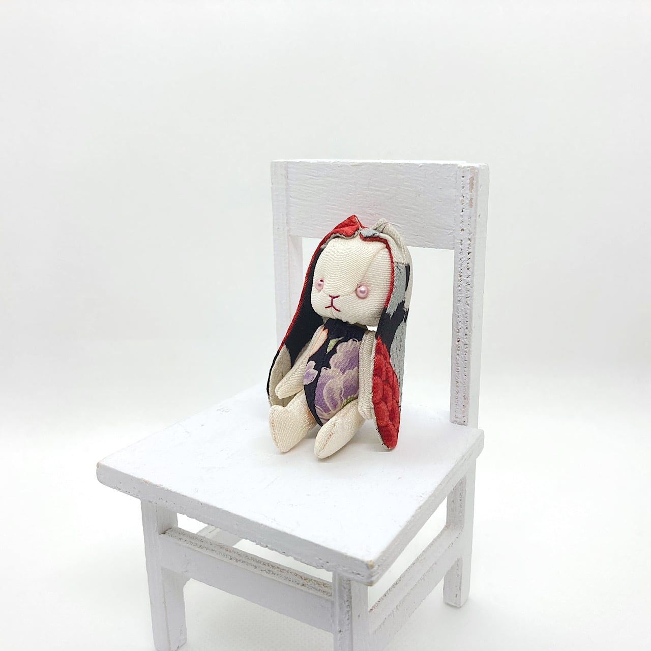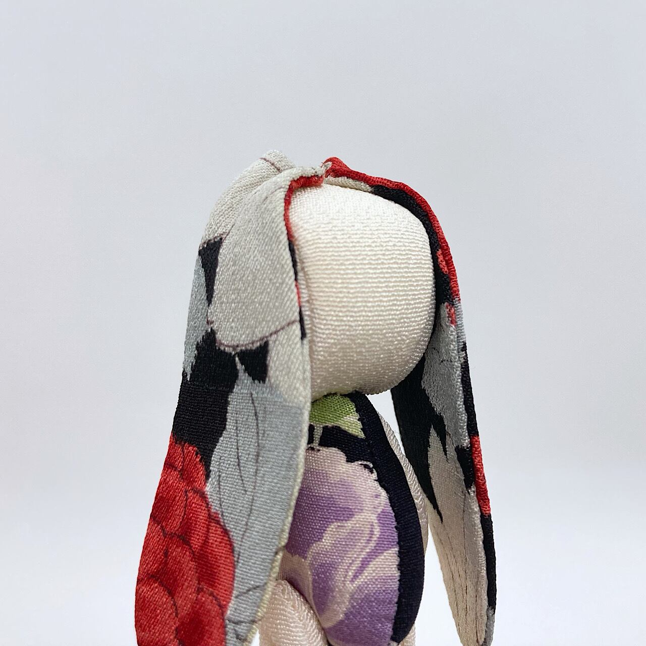 黒地に色とりどりのお花をまとった、シックな白うさぎさんです。